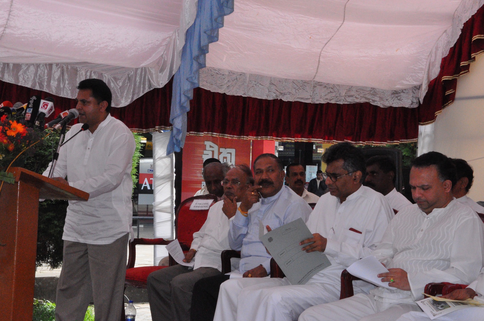 Laying of foundation stone for new Nuwara Eliya Market Shopping Complex, sponsored by Nuwara Eliya Municipal Council & UDA ceremonially commenced work by Hon: Ministers Naveen Dissanayake and Hon Champika Ranawaka with the participation of Nuwara Eliya political leaders on 07th August 2016 at 2.00pm near Central Market premises.